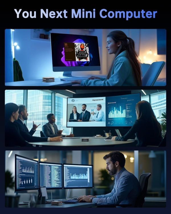 Dual 4K Display Mini Computer for Productivity: Uniquely designed, this mini pc features HDMI + DP ports for dual-screen setups, boosting workflow efficiency. The VESA mount hides the mini computer behind monitors/TVs, decluttering your space. Ideal for office or entertainment use