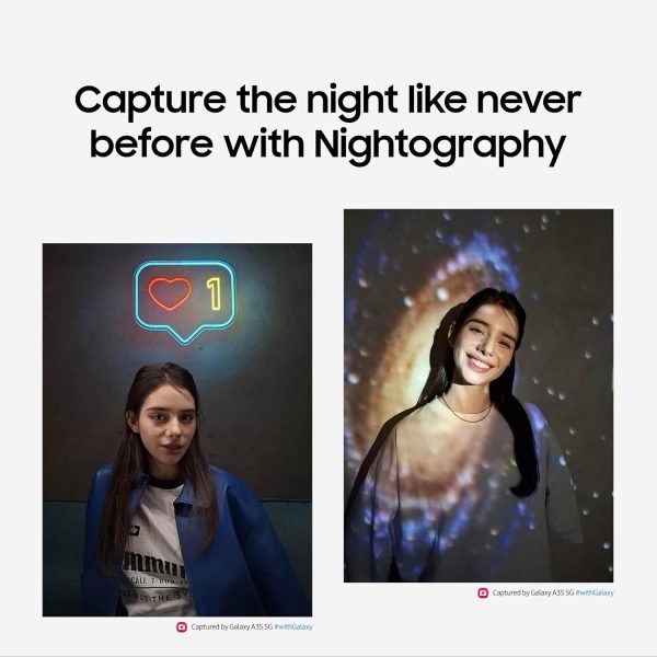 Nightography just got fun. The Galaxy A35 5G comes with an improved NPU and an enhanced sensor that makes photos clear with detail even in the dark. From nightscapes to night portraits, you’ll get more detail in every shot.